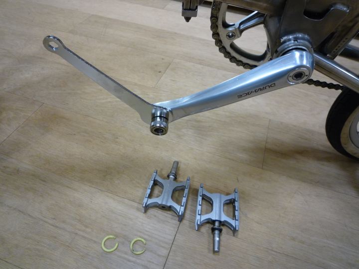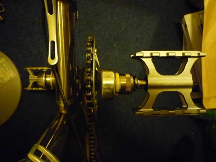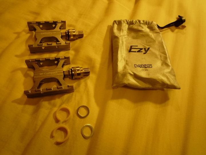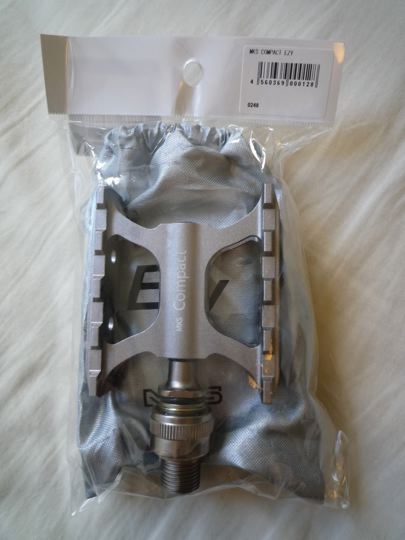 謎の撮り鉄男ミスター。そのミスター自身がにぶいのか?はたまた初代Traincle6500のシングルピポッドのブレーキが甘いのか?軽すぎる事が原因なのか?それとも偶然の出来事なのか?真実は不明なのですが、ミスターはこのTraincle6500で2回も事故りました。幸いにして怪我などの被害はなかったのですが、キャットアイのLEDライトが破損、ベルも破損となり、早速修理含め少しいじる事にしました。10年前でも定価176,000円<税別>、その後レアメタルのチタンが高騰し、少し重くなったにもかかわらず現在はなんと定価330,000円<税込>もします。その10年前のものを中古で格安で入手したので、ところどころ換えなければとは思っていました。まずは全く事故原因とは関係ないペダルの交換から。謎の所沢にある世界的ペダルメーカー三ヶ島製作所のCompact Ezy2つで302gをチョイス。ワンタッチで取外しが出来る優れモノの中では最軽量なのです!場合によってはBROMPTONの軽量化にも使えるのでとりあえずこれに。