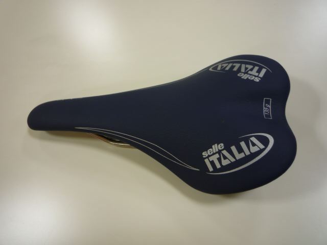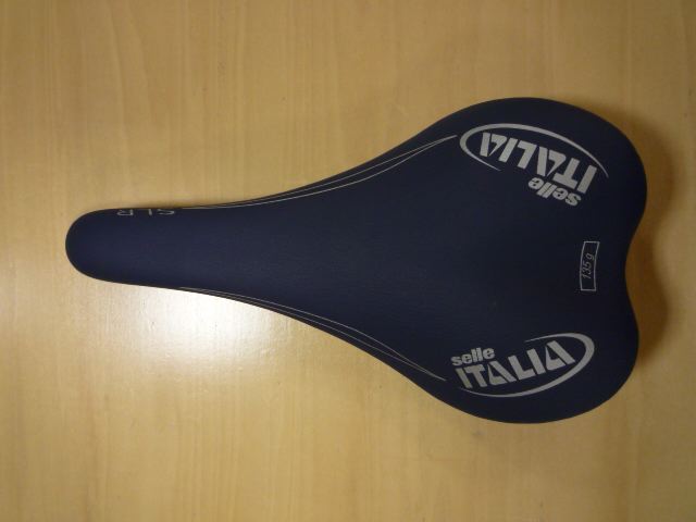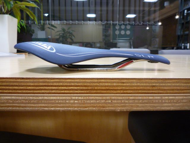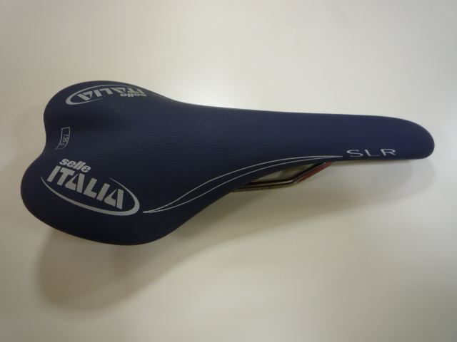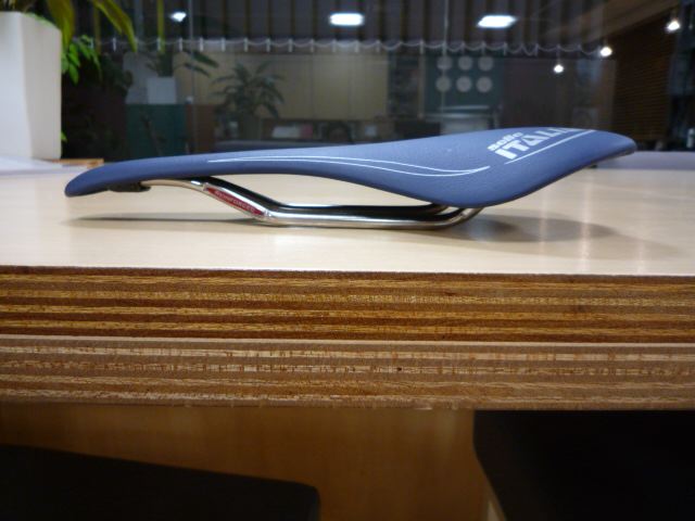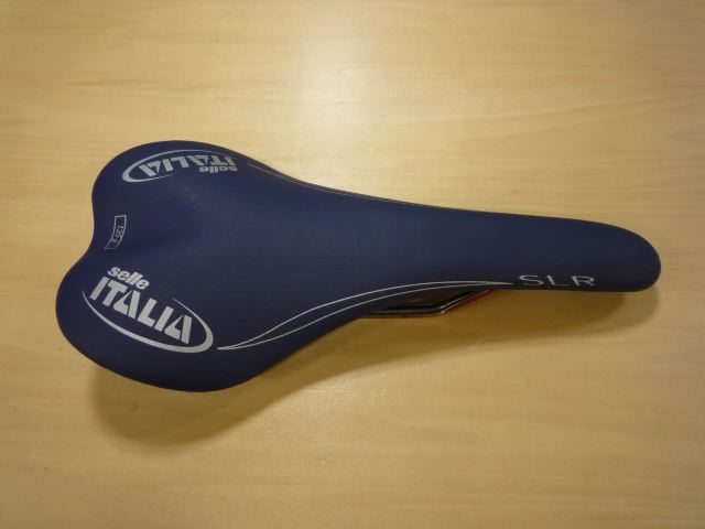 となり、現物を見に行ってみました。もの凄い店構えの中古屋さんでした。店内も車やバイクや自転車のパーツが凄かったのですが、壁のネットに括り付けられているサドルコーナーを発見!しかしなかなかSLRは見つかりません。しかたなくお店のお兄ちゃんに「NETでSLRの新古品を見たんですけどまだありますか?」どれどれといった感じで無言でSLRを探し出すお兄ちゃん。「これですよ」な、な、な、な、なんとぉ〜っ!NETで見た時は色は「黒」に見えたんだけど、そのSLRは「青」なのでした!