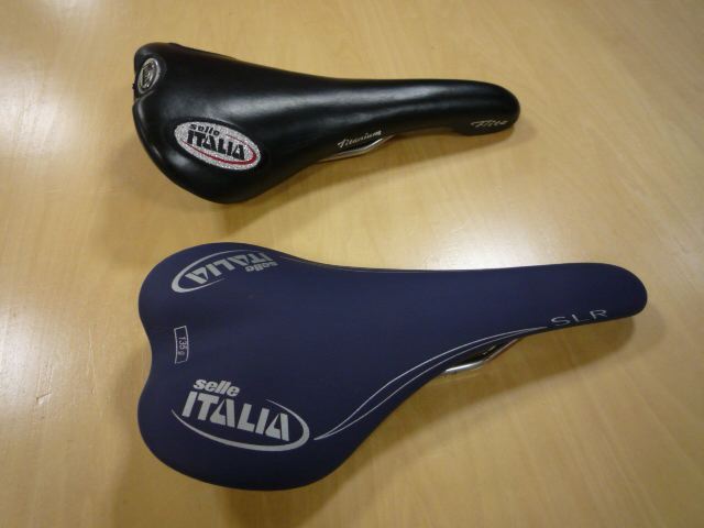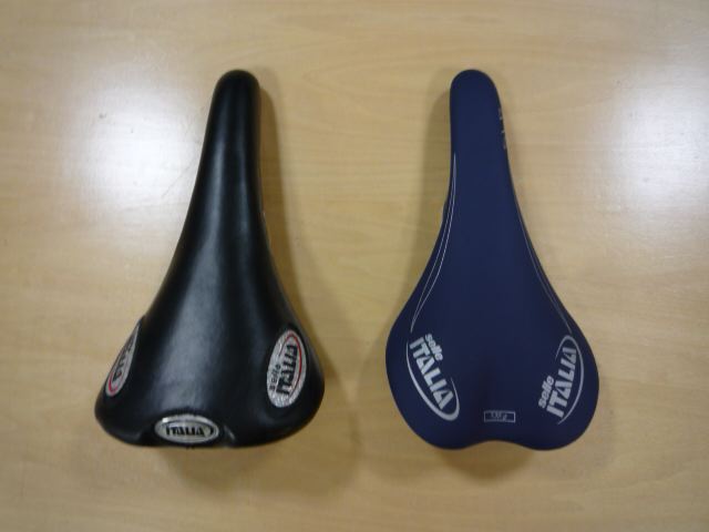 2つのセライタサドルを並べてみた。重さは確実に半分近くの感じ。つけてみましょう。