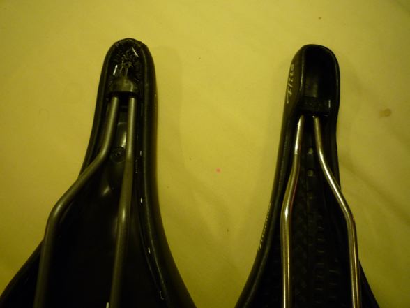 Treincle6500についてたサドルの、オリジナルセライタリアフライトチタニウムは、青いSLR135gに交換してしまったので、実はあまっている訳なんです。本当はBROMPTONの軽量化として黒いSLR135gに交換予定だったんだけど。とにかくこれはもったいない!そこで必殺技を思いつきました!ブロくんを少しでも軽くする為に、はずしたセライタに交換なのだ!
