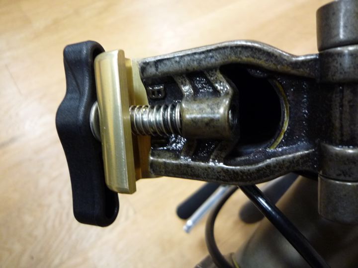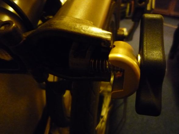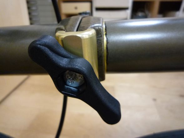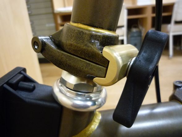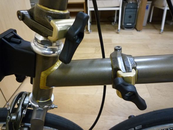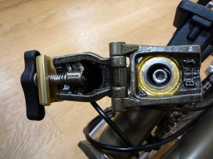 メインフレームとハンドルステムの折りたたみ部分の2カ所あるヒンジクランプ部分なのですが、純正品はなぜかそこだけ、いまいちチープさが漂っています。