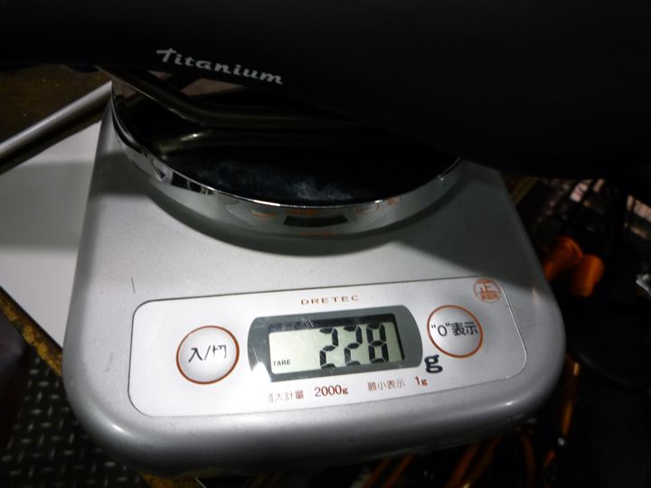 345gでした。すなわち、今回の減量は、345-228=117gの減量となりました。純正サドルの「ここをもて」グリップが使えなくなるのはなのですが。イヒヒ。