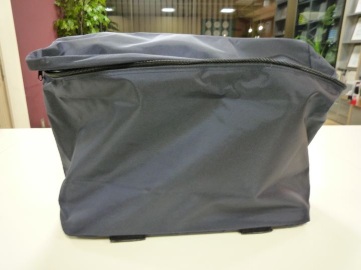 たまたまとある自転車屋さんで超大安売りのキャラダイスのBROMPTON専用バッグなるものが3500円で投げ売りされていたのです。(通常1諭吉以上はしてたみたいです)バッグに関する知識がまったくなかったのですが、ちょっと汚れてる訳あり品でしたが、色が渋い紺でシンプルなデザインだったので、RAWカラーにも似合いそうだからと購入いたしました。これです。