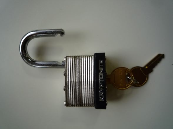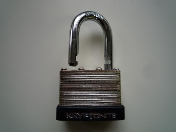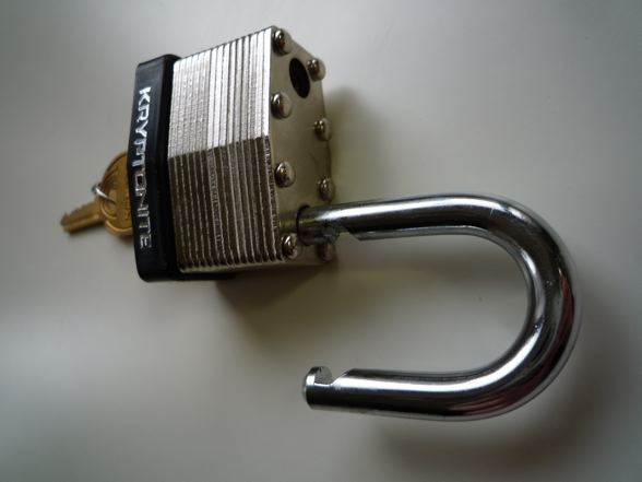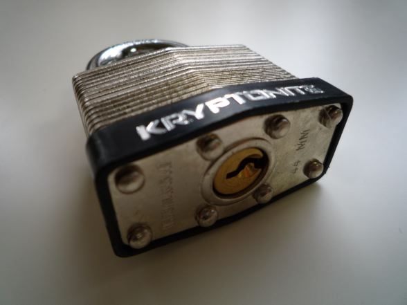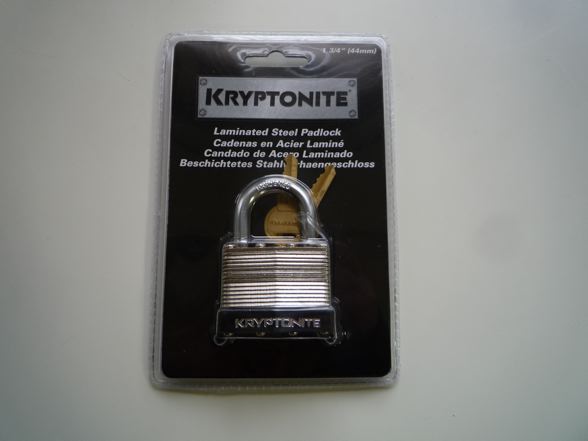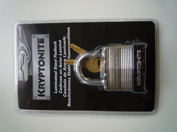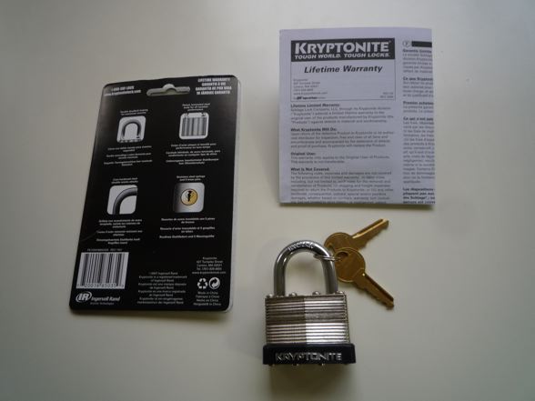 単に僕がへたくそなだけかもしれませんが、とにかくあかない鍵ってのは最強だけど不便です。そこで同じKRYPTONITE社のシンプルでちょっとレトロでゴツい南京錠を発見。泣く泣くポチりました。