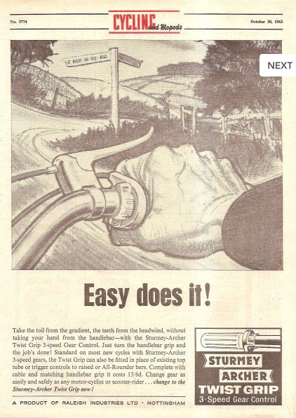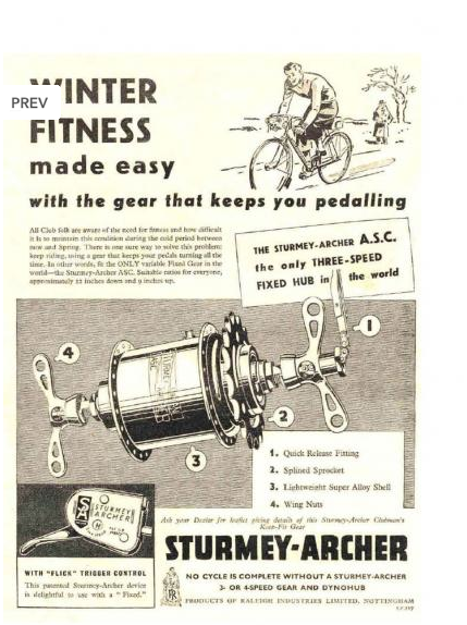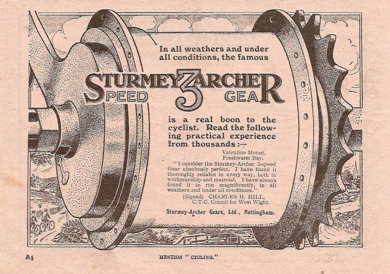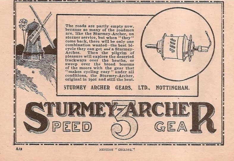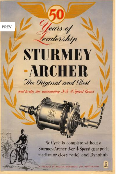 軽量化を目指していた我がBrompton M6L RAWですが、どんなに頑張っても内装変速機がついてる以上、絶対に激的には軽くならない事が判ってきました。そこで基本コンセプトを急遽変更し、純正内装変速機BWRを作っているSturmey-Archer社のSRF-5に換装し、純正外装2段と合体させて10段化によるロングツアラーモデルを目指す事になったのです。まずは、Sturmey-Archer社の歴史から。