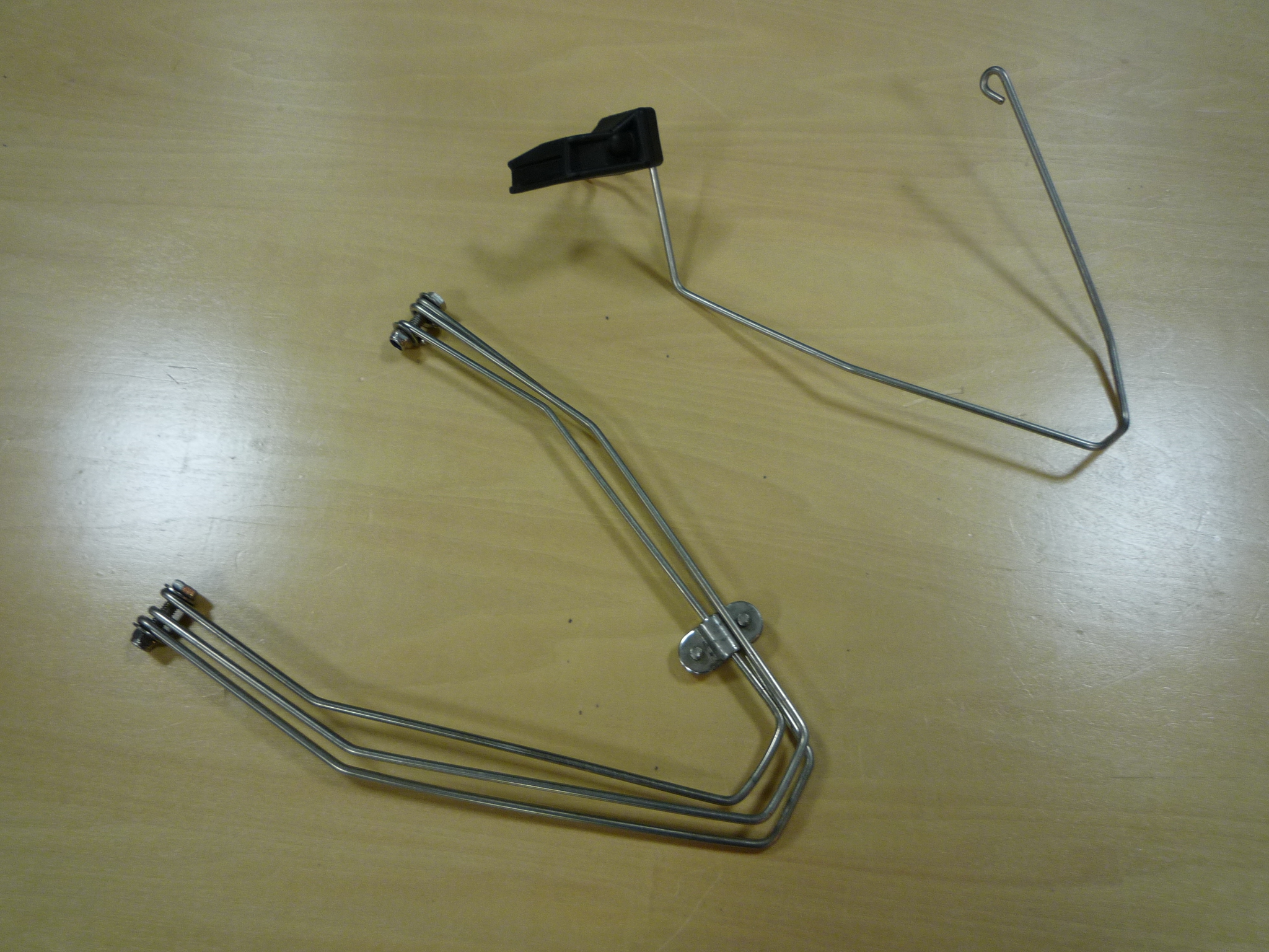 はずしたステンレス製泥よけステー。もらったチタンに交換。しかしこの重量差なんて極わずかなものでしょう。不思議な所にお金をかけますね。?です。