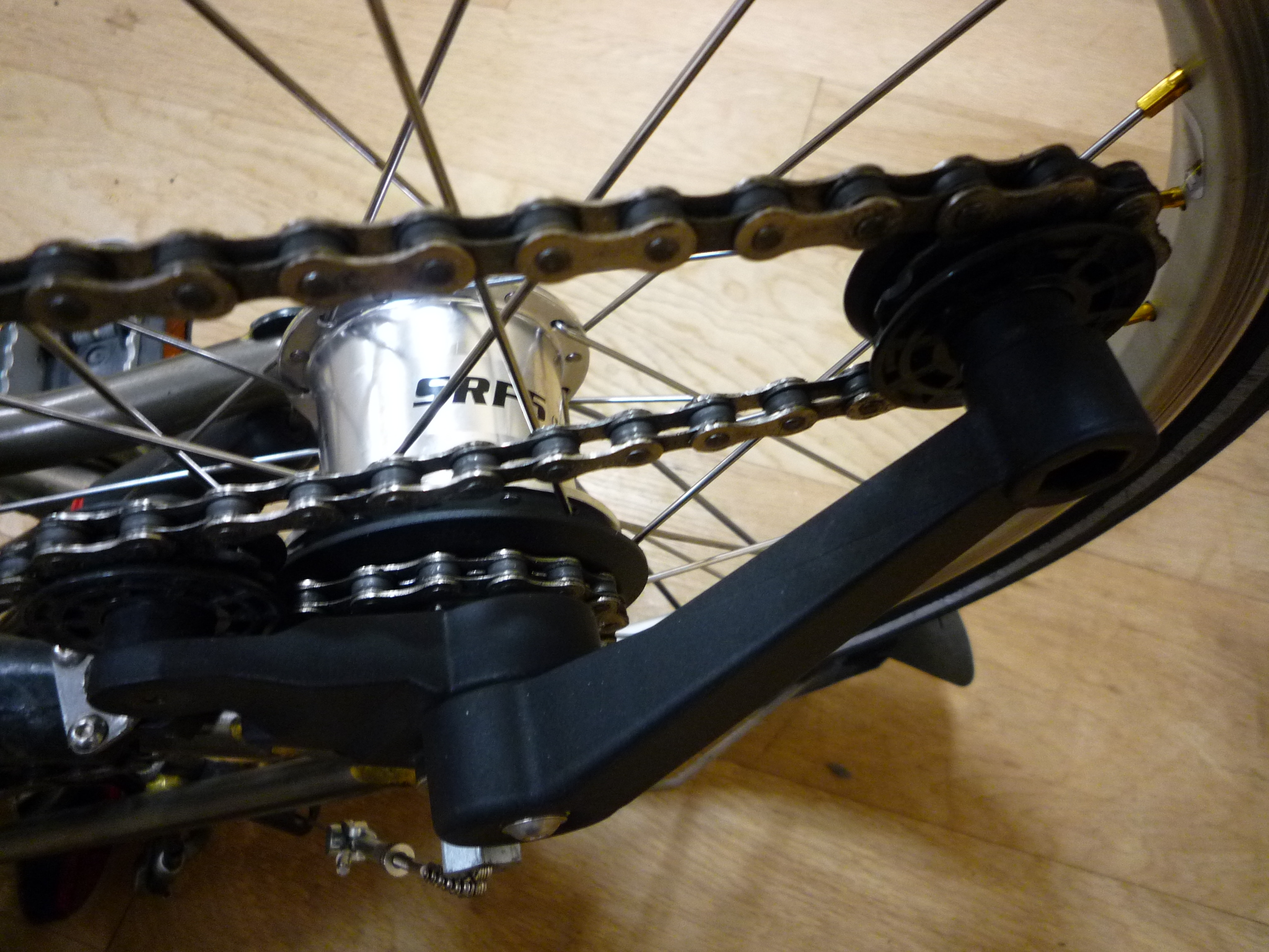 低速でのストップ&ゴー(通常の街乗りレベル)では、いちいち変速するのがちょっとややこしいです。なので中間よりやや下あたりで、外装側のみのシフトだけに固定しちゃった方が楽です。これなら頻繁に外装シフトのダイレクト感だけを楽しめますし。S2Lとかの2段って最初は意味がわからなかったけど、都内の街乗りでは2段で充分だという事がわかってきました。