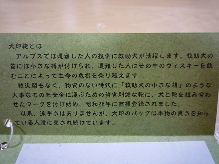 ブランドの由来やお手入れ方法まで丁寧な説明が。