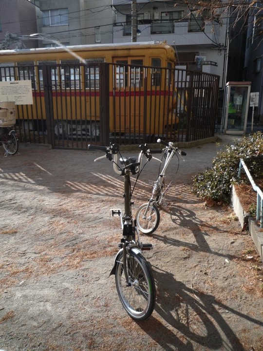 保存車を撮影したい謎の男ミスター。ただ自転車に乗りたいだけの僕。二人の願望が重なったので都内をミスターに言われるがままに「輪行&ポタ」で走ってきました。僕は全く電車には興味がないので、どこに行ったのかは覚えておりません。電車好きの方はクイズです。どこに行ったのか当ててみてください。ちなみに今回の折りたたみ自転車は、ミスターはトレンクル6500かるおくんで、僕はいつもの様にブロくんで。