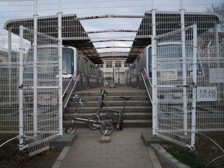 輪行はこんな感じで。折たたんで電車乗って、広げて走って、撮影して、走って、また折りたたんで電車乗って移動、の繰り返しです。車内では、