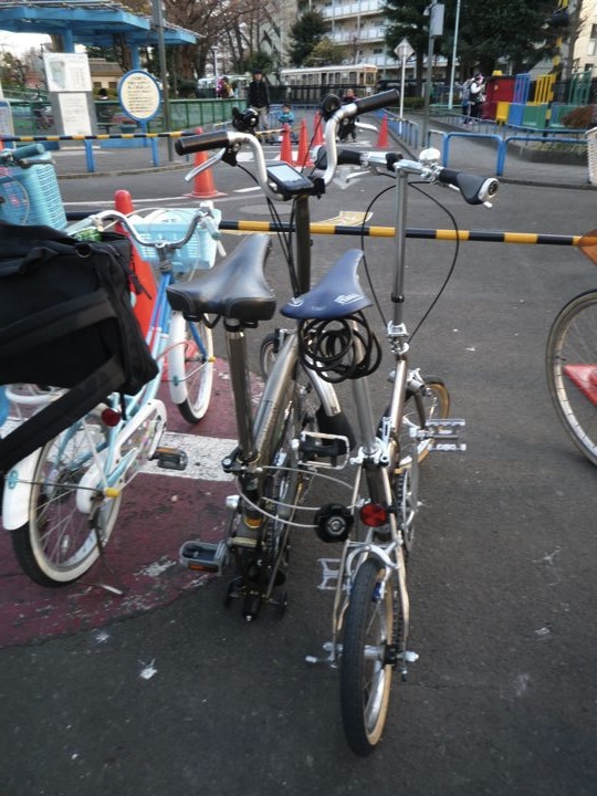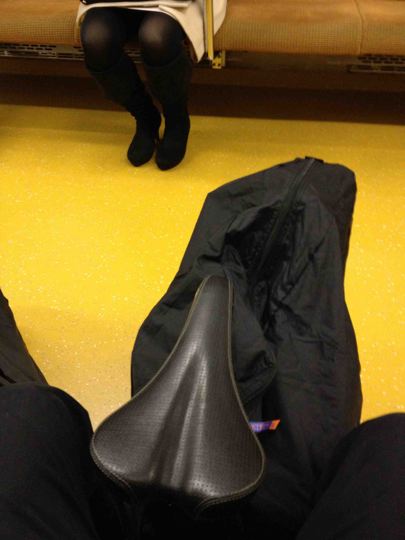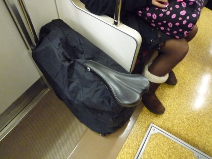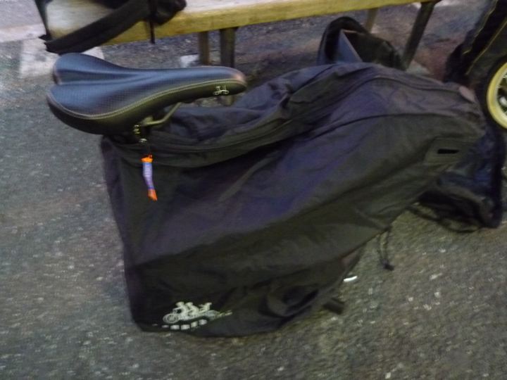今回はしぶやさんの輪行カバーで。今回の様なパターンでは、これが一番使い勝手がいいです。この状態で運ぶ時は、サドルもセライタフライトより重くてもグリップ付き純正サドルが断然いいですね。カスタムも段々元に戻るかもしれません。素のBromptonってやはりそれなりに理由があってそうなってるんだなぁと感心してしまいます。いじる必要ないのかも。