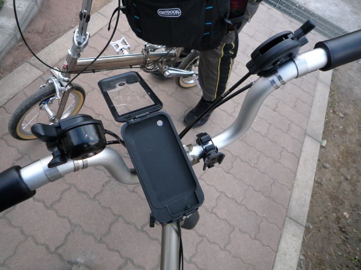 自転車で走行時は、iPhoneナビで目的地に向かいます。