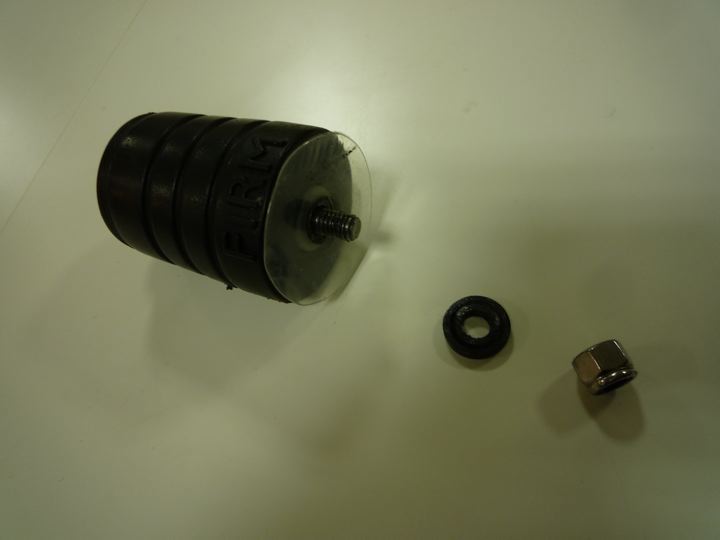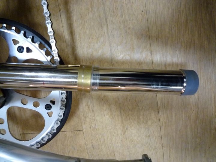こちらが、Brompton純正の黒いゴム製サスペンション・ブロック。最近のやつはみんなハードタイプみたいです。見た目はやはりこちらの方が好きですね。軽いし。