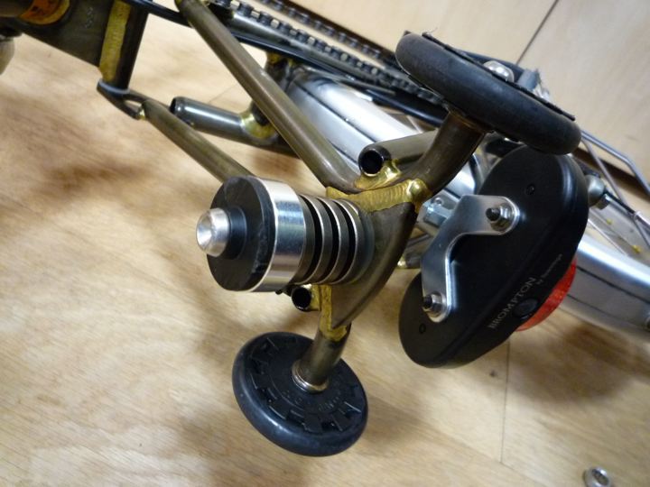 加茂屋さんのジェニーサスがご機嫌ななめだったので、Brompton純正Suspension Block Hardタイプに戻してしばらく乗っていたのですが、またジェニーサスに交換する事に。その前に、同じく加茂屋さんのポストキーパーがとれちゃったのでもう一度取り付け。以前マークしたマジックの印が消えちゃったので、これが意外と高さと角度の位置決めがむずかしかったりするのです。