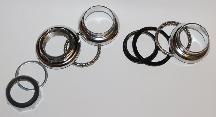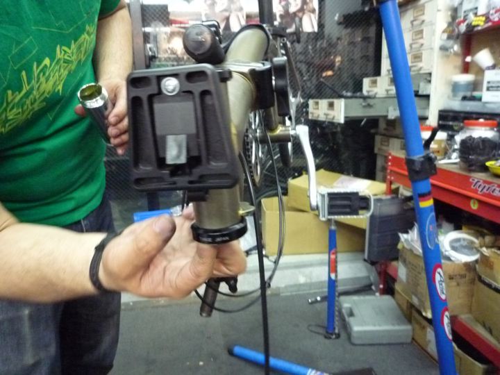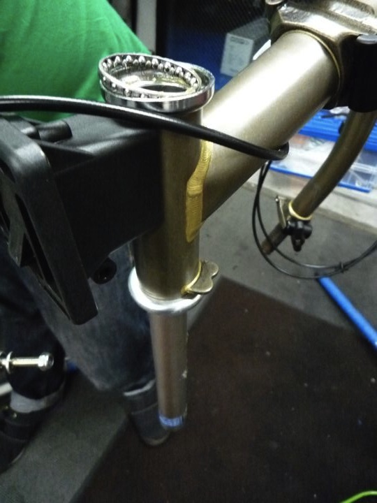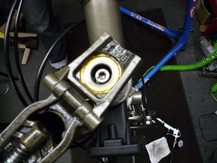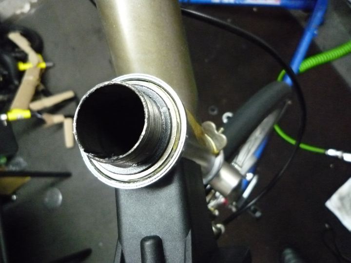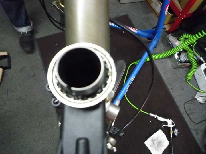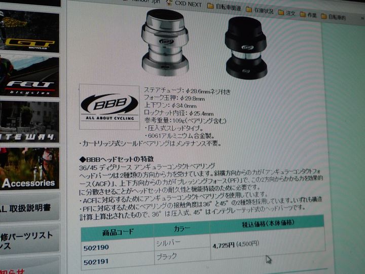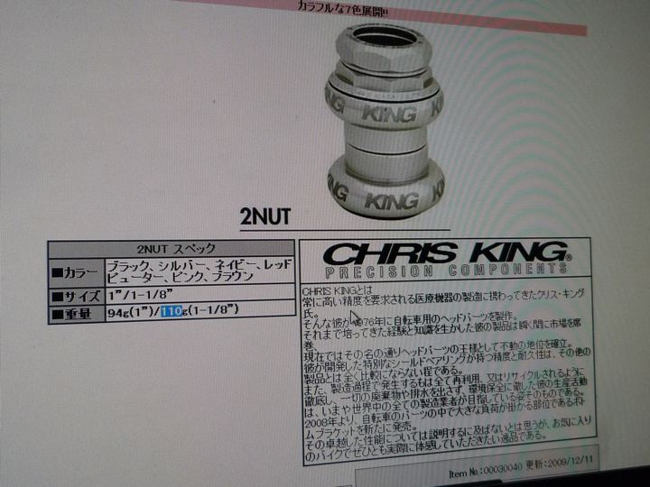 そうなんです!ついにHEADSETの交換へ。アノ部分をじぃ〜っと見ていたら、なんか急に「色」が気に入らなくなってまいりました。気になり出すと止まりません。そこで調べてみるとアノ部分はHEADSETとかヘッドパーツとかゆ〜事がわかりました。なるほど。更に調べてみると「CHRIS KING」とゆ〜メーカーさんがその名の通り王様らしく、精度はいいらしいのですがやたら高いしデザインが気に入りません。
