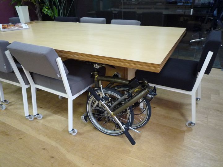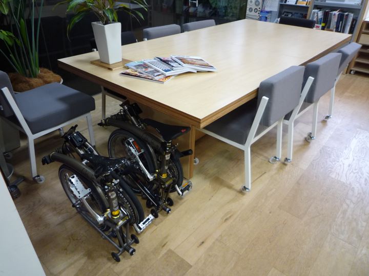 引出し付きなどのデスク下だと少しサドルがひっかかりますね。