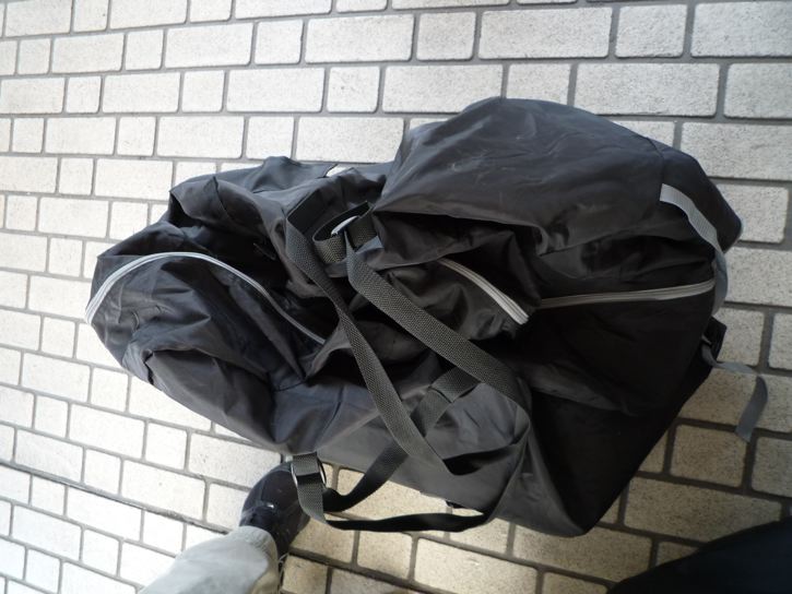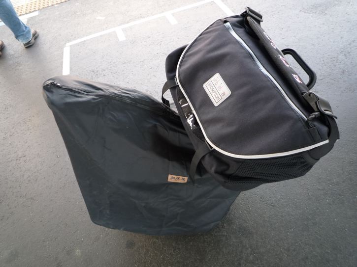 また移動!S-Bagは引っ掛けて転がせるモードは便利ですが、泥除けをはずした関係で、転がす時が超アンバランスです。ぬ〜