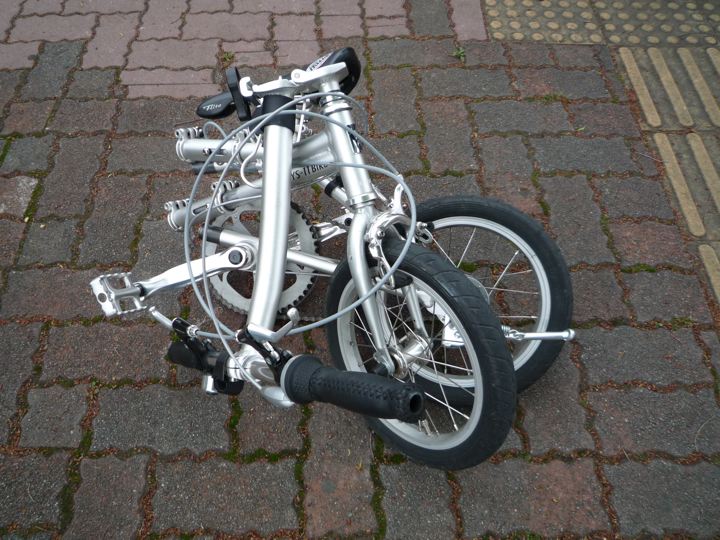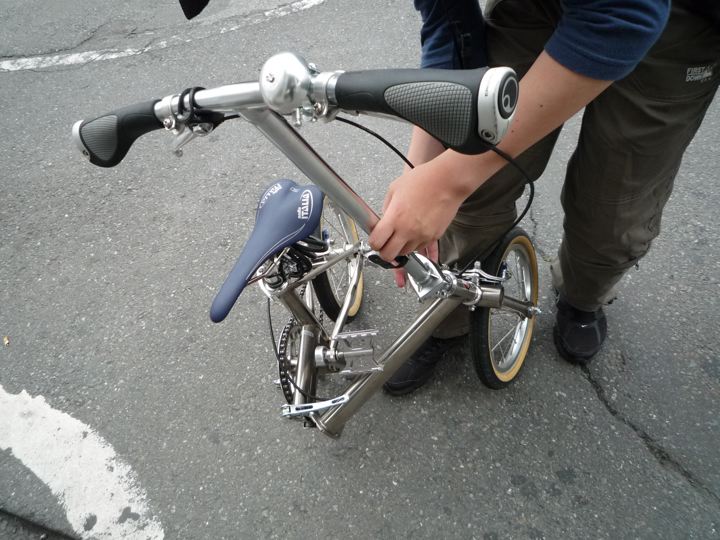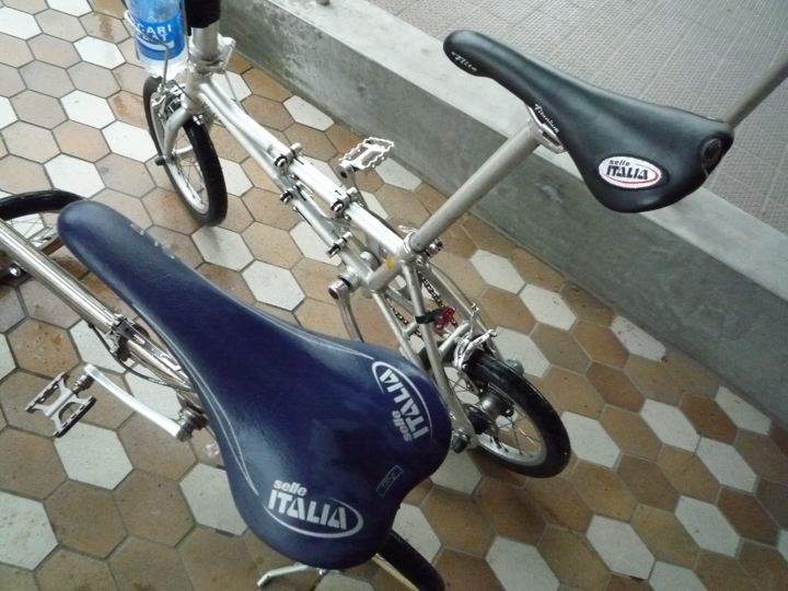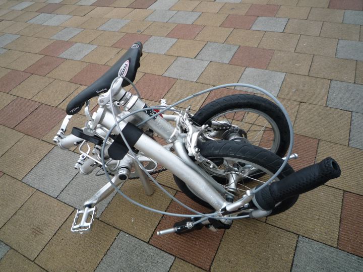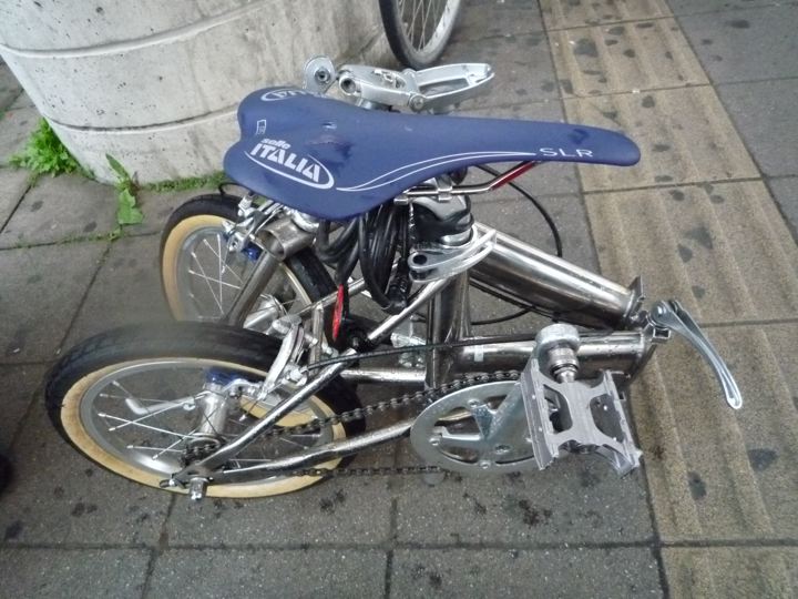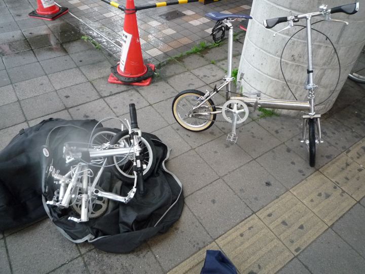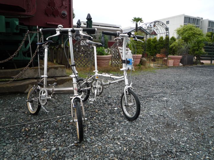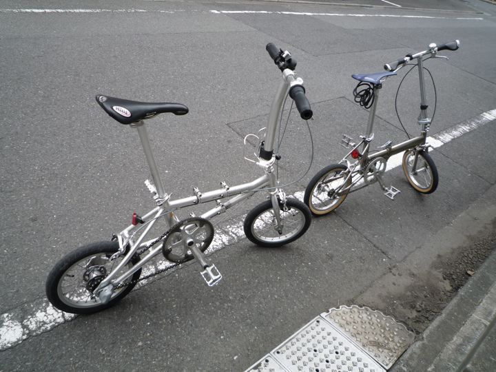 どちらも似たコンセプトなので、YS-11は「自転車がほすぃ〜」といっていた「だいぶつさん」に2万円位でお譲りしようかと思いましたが、本体6万+パーツ代でも1万位はするので、正直「あきらめます〜」と言って頂いてホッとしました。なにしろ一番最初に買った折りたたみ自転車なので多少の思い入れもありますし、白井社長のお顔が思い出されます。YSは固かった折りたたみ部分が改良されて随分と折りたたみしやすく進化したみたいです。個人的には、たとえ固くてもこの初代折りたたみ形式が気に入っていますが。