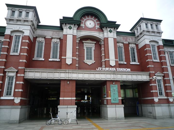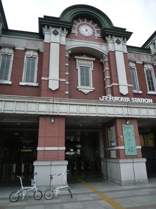 輪行して深谷に到着。東京駅が深谷産の煉瓦を使用していることにあやかり、東京駅を模して改築されたとゆ〜、ジョサイア・コンドル先生に師事した辰野金吾もどき。赤煉瓦に白い石を帯状にめぐらせるデザインは、ヴィクトリアン・ゴシックに影響を受けたものでまさしくこれも「辰野式」なのだ。イヒヒ