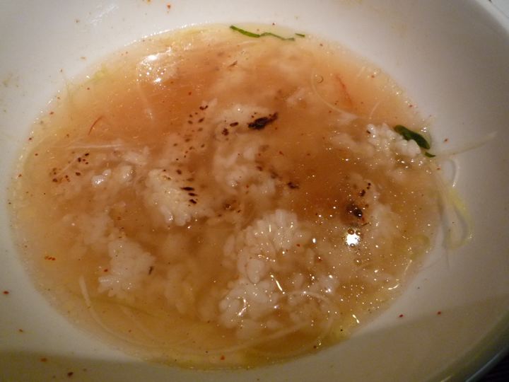 特にお薦めの、焼きおにぎりをくずしてスープに浸して食べるのは
