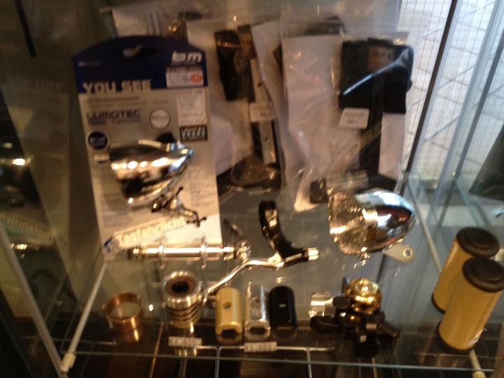 定番のバッグ類やパーツ類が、純正品だけでなく美しく並んでおります!
