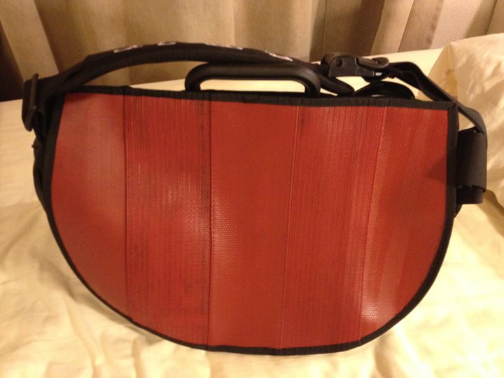 イギリスの消火用ホースを素材としてリサイクル利用したものだそうです。