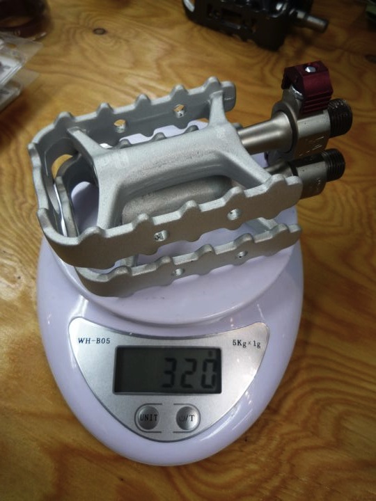 ついに世界一ぺったんこになる純正ペダルくんのお別れの時がまいりました。記念に重さを計ってみました。