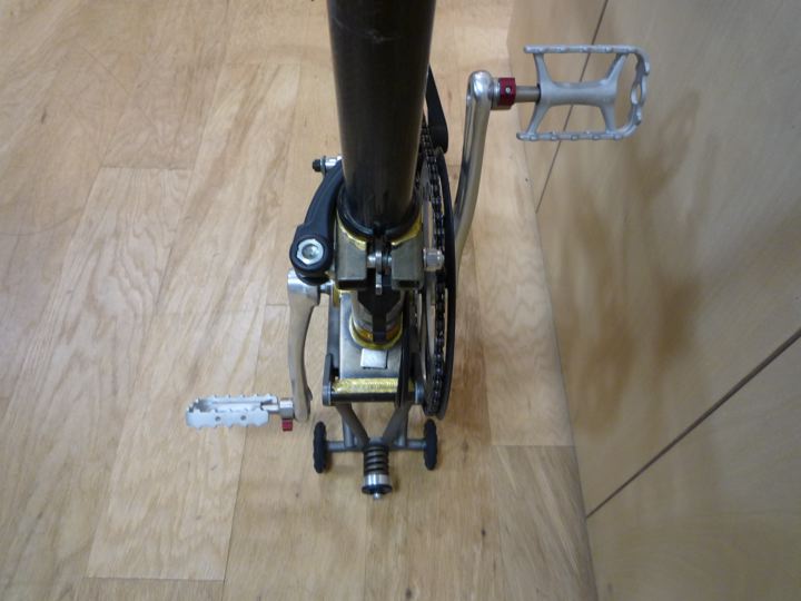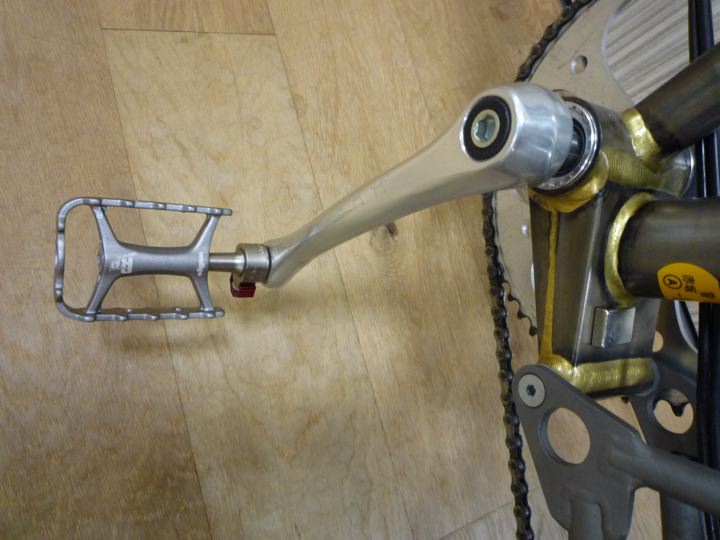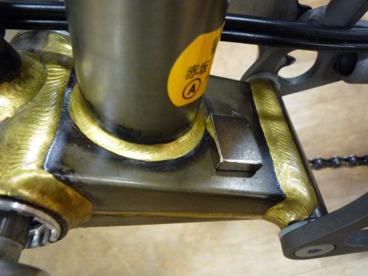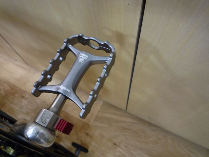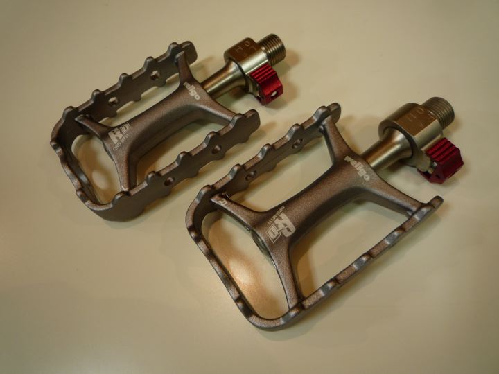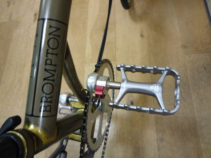 何度もじぃ〜っと見つめてみた訳だが、どうもおかしい。クランクやチェーンホイールのシルバーとはあってはいるが、やはりここはメインフレームやチタンフレームの色にあわせたいのだ。