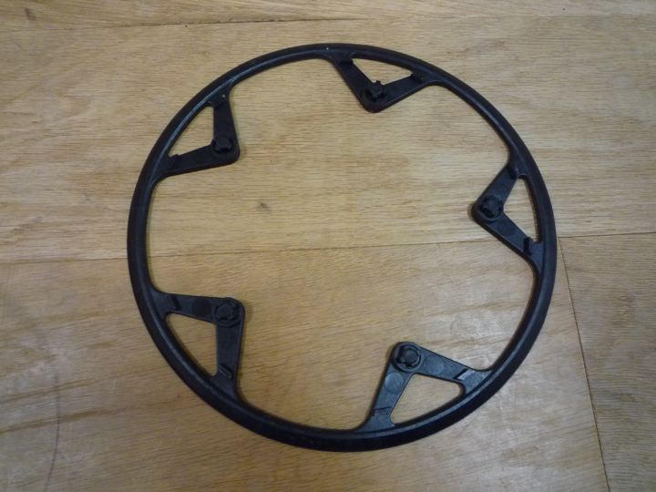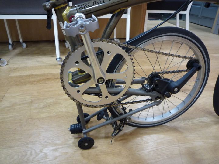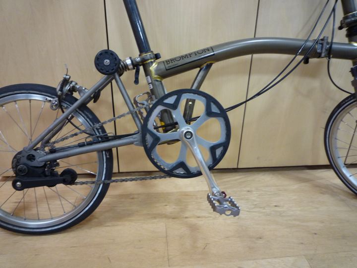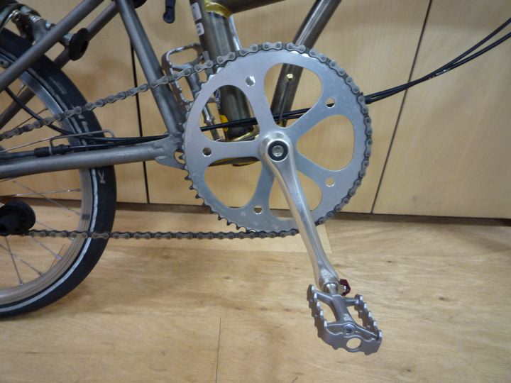 お次ぎはチェーンホイールガード!Bro乗りのどなたかが、はずすとカッコいいと言っていたので真似する事に。Brompton Chainwheel Guard Disc 54T QCWGD54。とる。