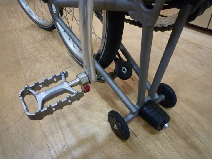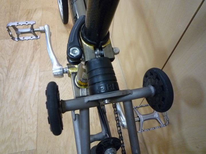 BROMPTON Easy Wheelとの質感のバランスもよく、見た目はやはりこちらの方がしっくりきますね。だいぶ軽いし。