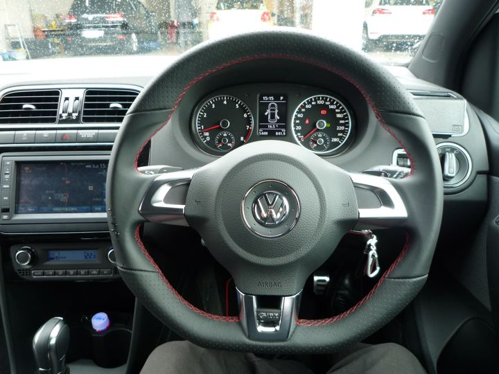 当時Polo GTIの試乗車がまだなかったので、営業のくぼたっちの私物に無理矢理乗せてもらいました。赤いラインやGTIエンブレムをわざとはずした「羊の皮をかぶった狼」的なカスタムが渋いのです。
