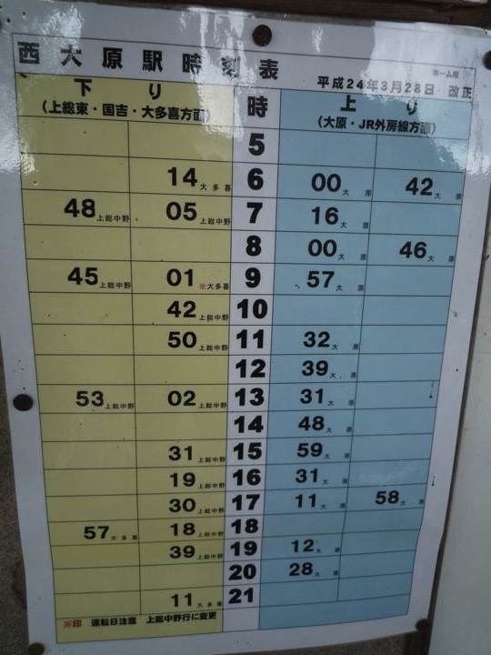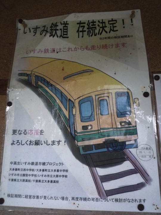 どこかをあちこちと回って、どこかで聞いた事のある「いすみ鉄道」へ。無人駅やトイレもない駅が多いのでした。しかし本数すくね〜。廃線の危機だったんですね。