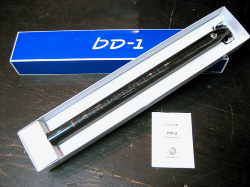 金澤輪業さんに問い合わせてみた所、残念ながらDAHON用に作ったカーボンシートポストは軽量化のための部品ではなく肉厚をあげてプラスチックキャップをつけるなど耐久性を重視したので480g前後あるとの事。ぬ〜残念!価格は16000円とまぁまぁな線ですが・・・。しかしそれを考えると、グラファイトデザイン社製のbd-1用Carbon Seat Post 重量347gで23700円は結構やるね。それにしても凄いBromptonだな。イヒヒ