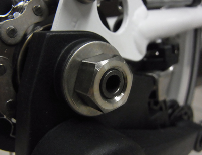 リア外装ハブの黒いナットをM10×t8チタンナットに交換で、左右で-6gの軽量化!