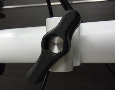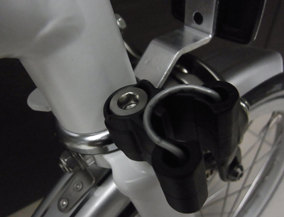 折り畳みの2カ所のヒンジクランプをチタン製ボルトに交換。チタン製ワッシャー付き。通常のスチールボルトをチタンボルトに交換。2本で20gの軽量化!