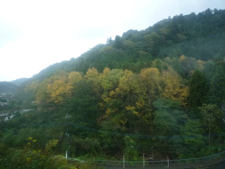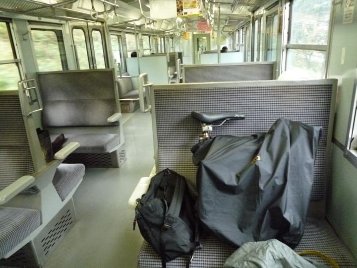 山間部へ、スキスキの電車で輪行。