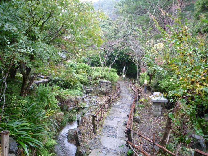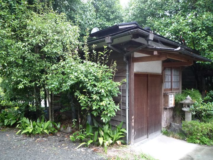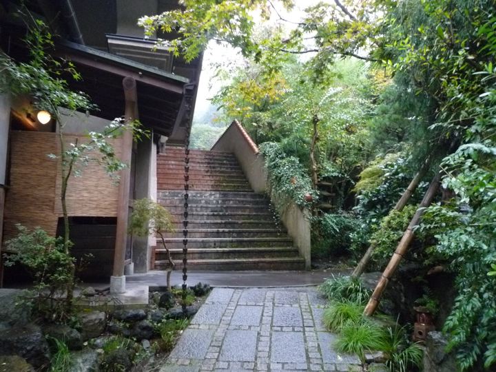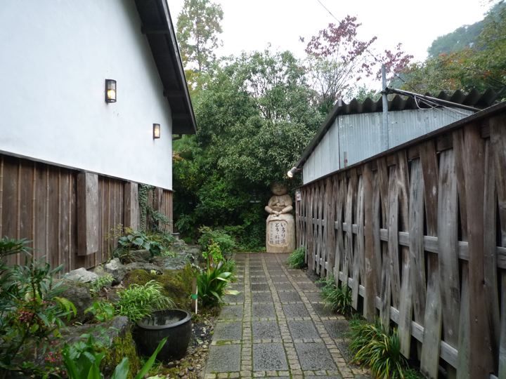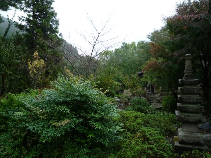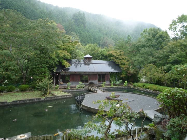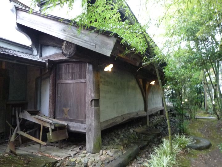 楽々な下り坂だったのですが、あまりに雨が激しいので全身ずぶ濡れ。ミスターもよく内装3段変速のYSでここまできたものです。登りでは差はつきませんでしたが、さすがに下りではブロちゃんと大差。しかもYSには泥除けがついてないのでミスターはしょってたバッグまでとんでもない状態に。引き離したミスターを待ちながら、ランチ休憩をとる事に。高尾山の山の中の不思議なお店へ。庭も建物も凄いです。