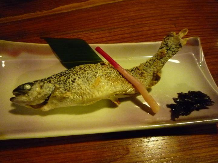 ミスターは、肉ほうとう。僕ちゃんは、ざるそば。そしてヤマメの塩焼きをシェア。
