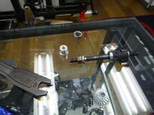 ピーターさんのここまでやるのか軽量アルミシャフトの交換!なのですが、ブレーキゆるめて(調整方法を知りましぇん)、タイヤとホイールもはずし、スプロケまでバラし、リアハブを抜き出すところまではなんとか辿り着いたのですが、問題の交換する部分の純正ステンレスシャフトがとれましぇん。しかも僕ちゃんは、直前の1つの作業すら最近は「忘れちゃう人」なので、果たしてこのばらんばらんのブロくんを再び組立てる事ができるのでしょうか?