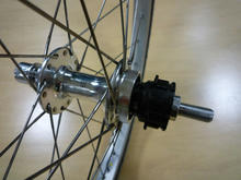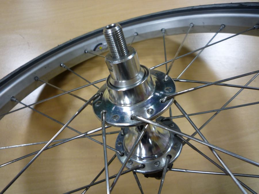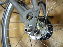ならばと、1年前から検討していたチタンスポーク(チタンカラー・シルバー)を思い切ってオーダー。これならば見た目は変わらないで重さは7掛け位にはなるだろう。調子に乗っていってみよ。フロントはちょっとだけ軽くなるらしいラジアル組みに。これなら見た目も知る人ぞ知る組み方だし。リアはそのままの2クロスで。イヒヒ。