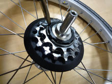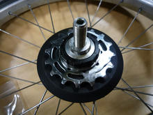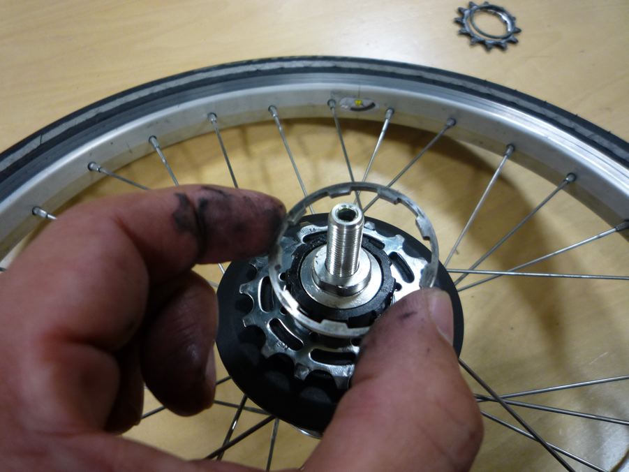このスプロケを止めてるわっかが、なかなかうまくつかないのでした。またしてもペンチとマイナスドライバーでなんとか、パチンと入った!この際だから汚れたスプロケのゴミを駆除してメンテナンス。