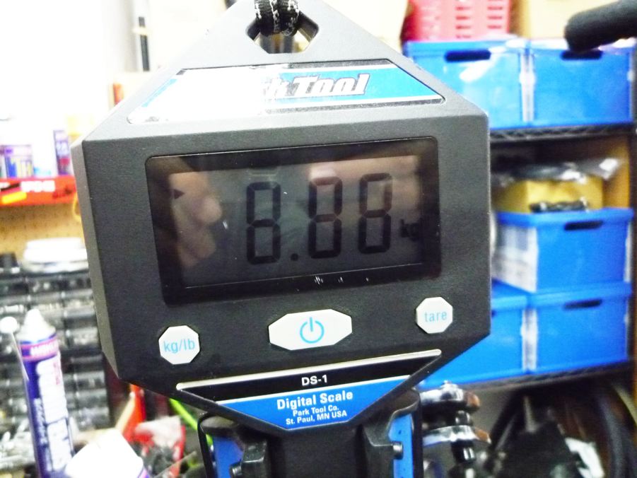 なるほどなぁ。タイヤとホイールって重たいんだなぁ。意外とチェーンテンショナーもプラスチックなのに重いんですね。