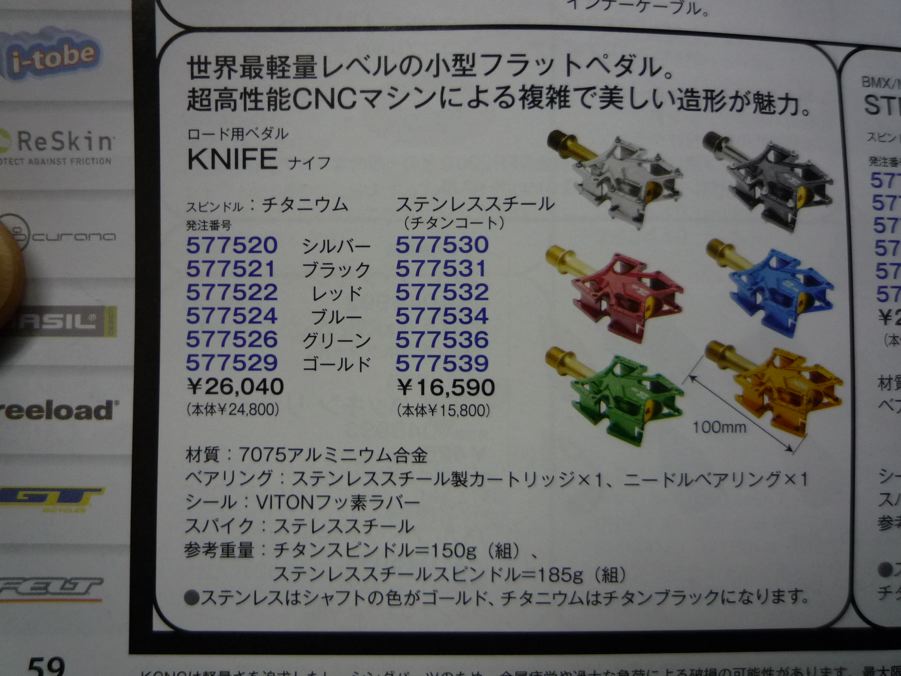 勢いづいたところで、更なる軽量化のご相談に。またまたペダルです。