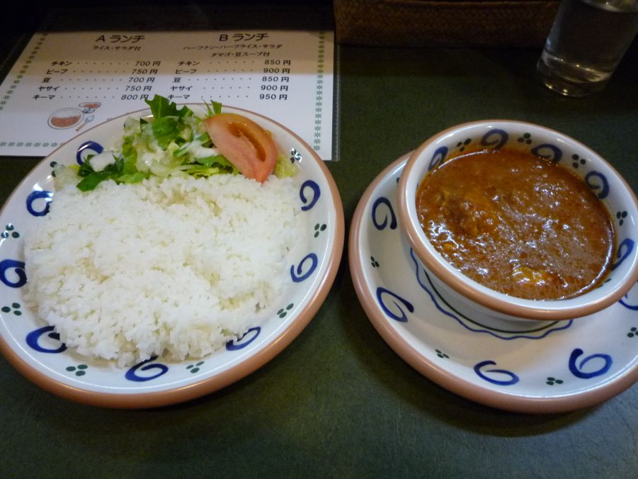 せっかく日本橋まで来たので、ローロスロースポットさんのご近所にあるインドカレーフジヤさんへ。初めてのお店の場合は、いつものセオリーに従い、一番安いAランチのチキンで。