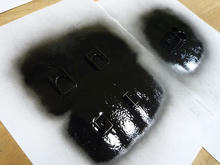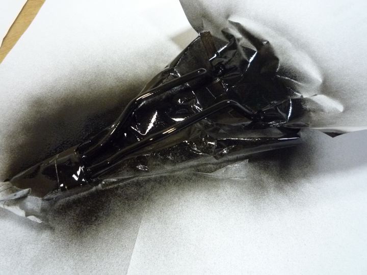 濡れ色ツヤ有りが乾いてくると、いい感じの艶消しブラックに・・・