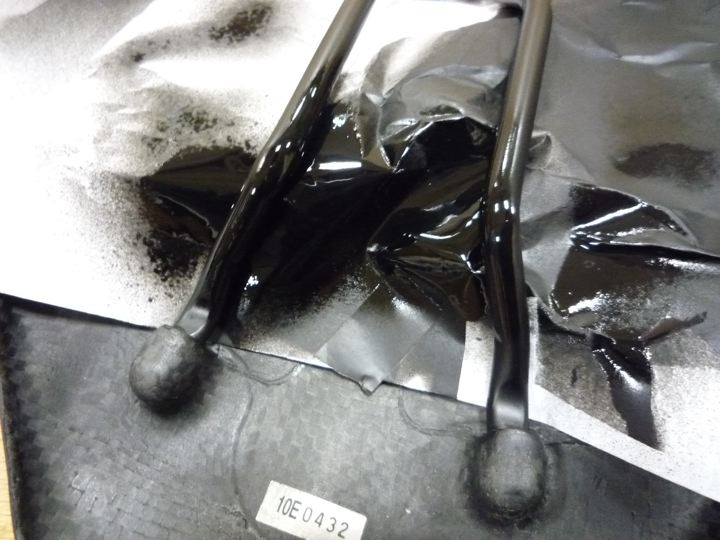 サドルレールの仕上りをチェック。所々薄塗の部分が・・・