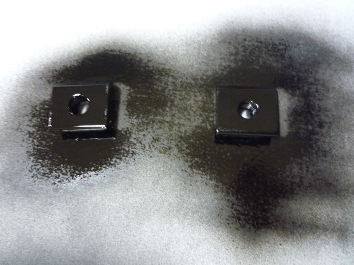 サドルレールのメタルプライマーが乾いたので、ラッカースプレー登場!