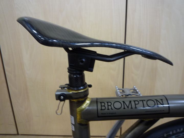 最軽量Bromptonへの挑戦その5 カーボンサドルでウルトラダイエット!の巻
