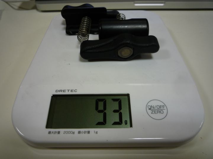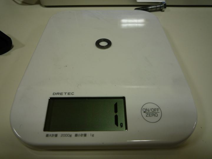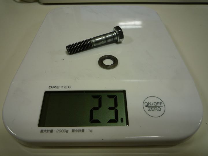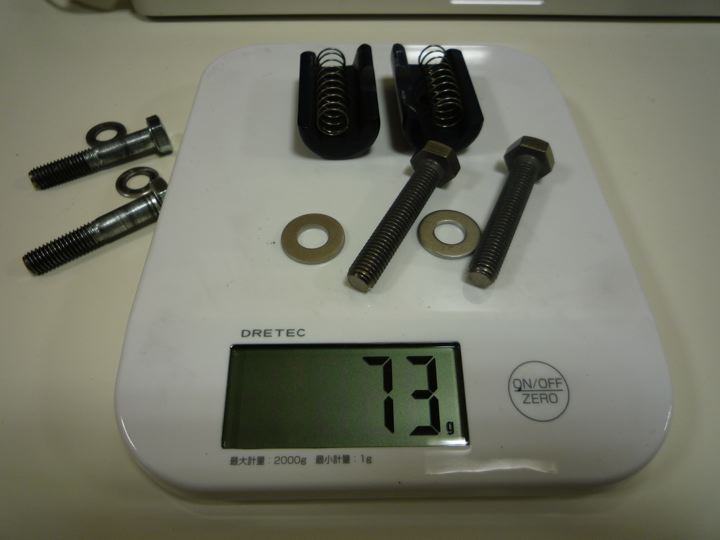 念のため、ガバッとまとめて計ると、純正+加茂屋さんで93gが、チタンボルトとチタンワッシャー交換のみで73gで、当たり前だが、-20gの減量効果!