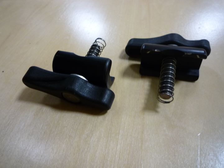 プラスチックのレバー部分だけ純正品を残し、加茂屋さんの黒クランプとスプリングも残し、CYCLETECH-IKDさんのチタンボルトとチタンワッシャーを交換!このチタンボルトはBrompficationさんの6-4チタンと違って、何故か色が茶色っぽいけど種類が違うのでしょうか?わかりまへん。